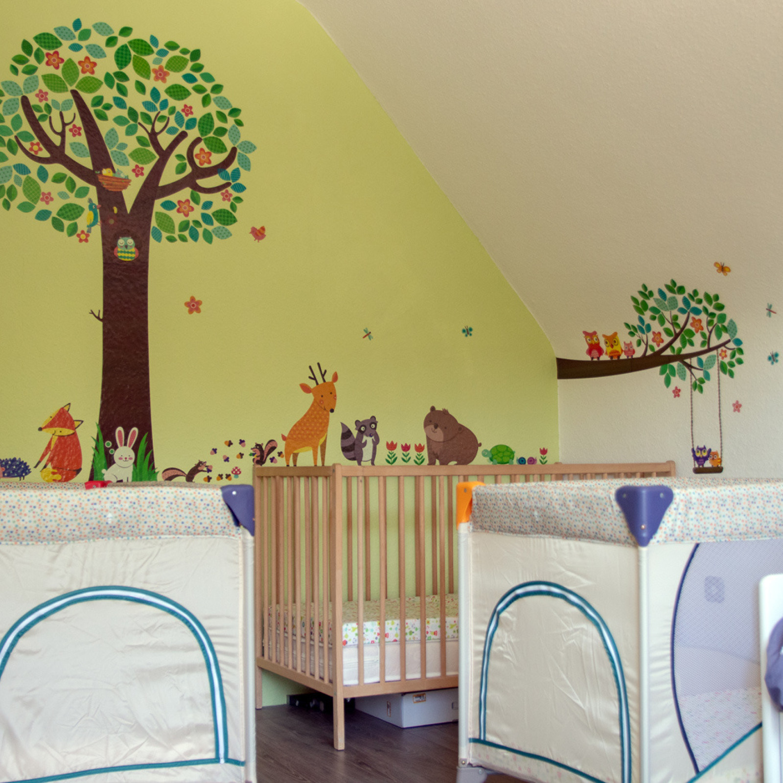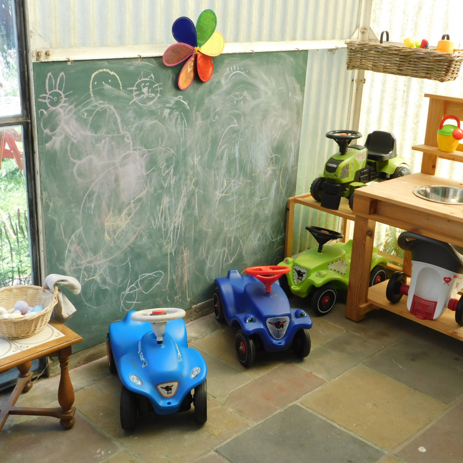 Die Spatzenräumlichkeiten bestehen aus Wohnzimmer (Ess-, Spielbereich), Flur, Kinder-Schlafraum, Wintergarten und Garten.